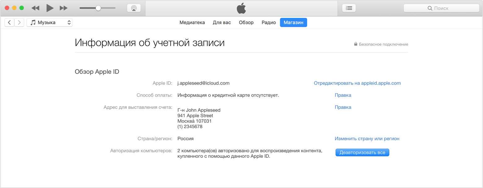 Теперь пришло время деавторизовать компьютер (Mac). Вы можете сделать это из приложения iTunes: нажмите «учетная запись» > «авторизация» > «Деавторизовать этот компьютер». (Деавторизация важна и в других случаях, таких как продаж компьютера или при отправка в сервис.)