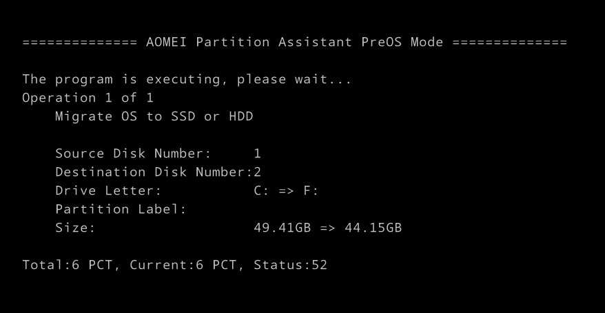 Во время переноса системы вы увидите всю информацию о том, какие процессы и операции копирования происходят в данный момент.