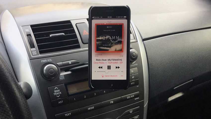 Теперь iPhone висит на держателе в центре консоли, и я легко переключаю треки в Apple Music через него.