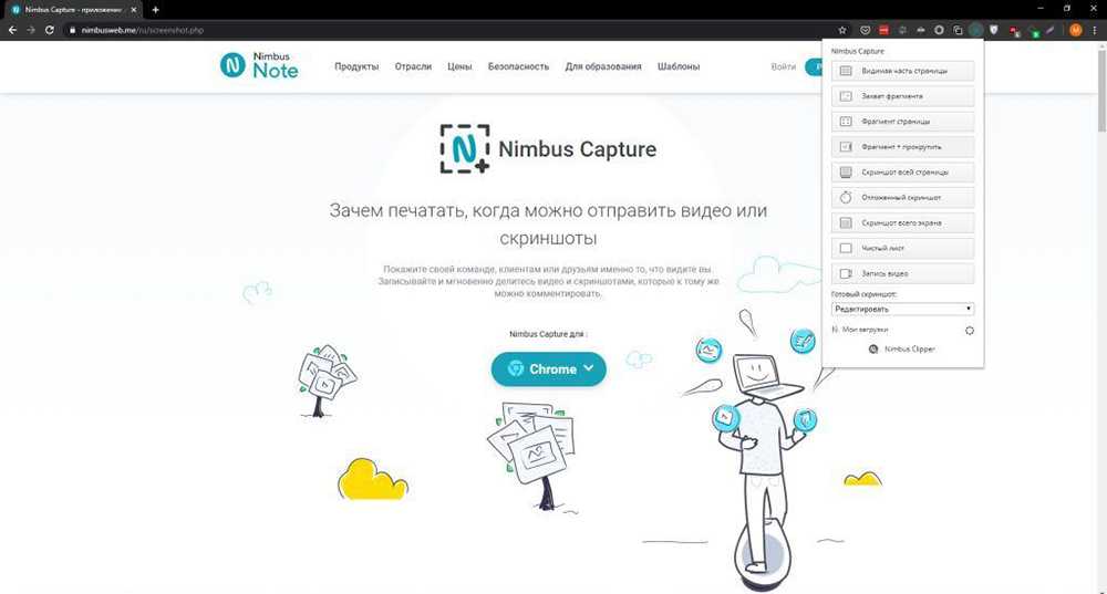 Nimbus – удобный плагин для браузеров Chrome, Opera, Mozilla. Создает скриншоты экрана, полной страницы (даже если та выходит за рамки экрана), окна, выделенной области.