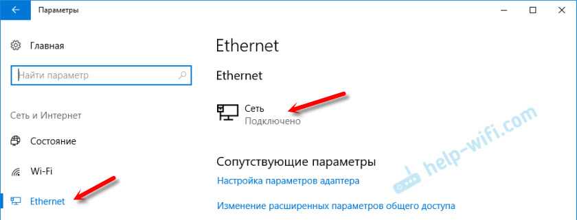 Точно так же заходим в параметры и в разделе «Сеть и Интернет» необходимо открыть вкладку «Ethernet». Нажимаем на подключение, чтобы открыть его настройки.