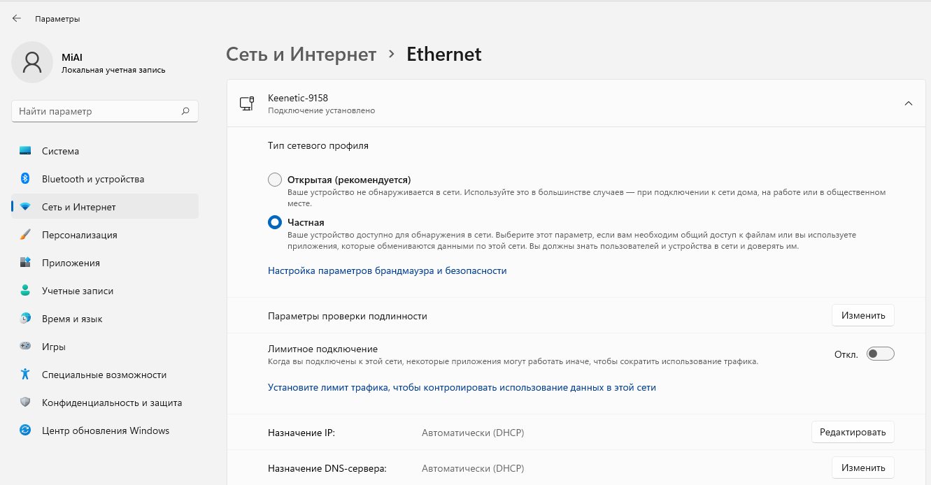 Настройка сетевого расположения для Ethernet подключения в Windows 10