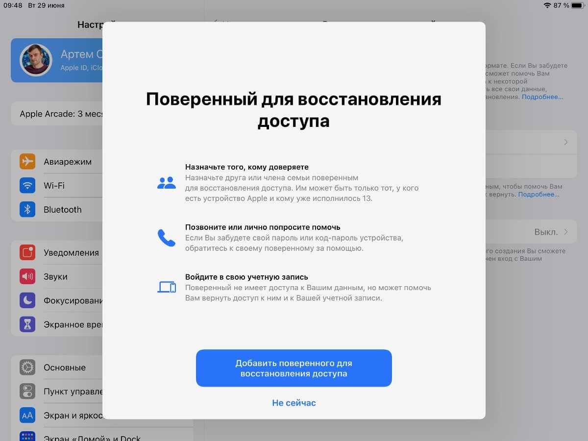 Упростить процесс восстановления учетной записи можно при помощи доверенных контактов. Это избавит вас от долгого ожидания ответа и необходимости отключать гаджеты своей учётки на время восстановления.