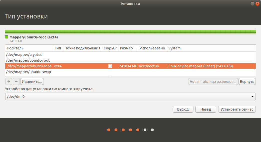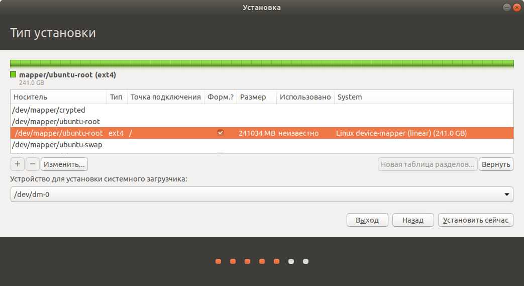 Шаг пятый, установка Ubuntu на шифрованный диск