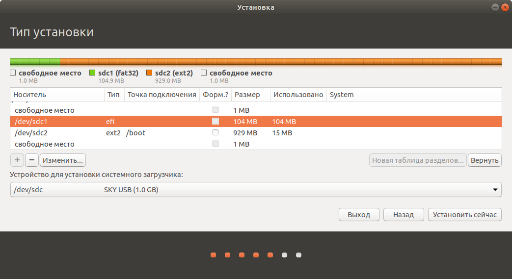 Теперь настройка раздела, тоже на флешке, для UEFI