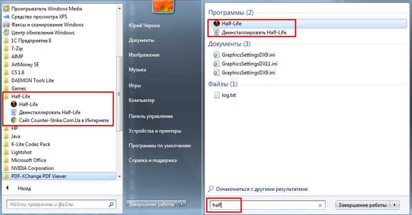 Из меню «Пуск»