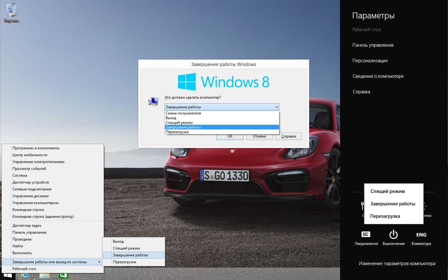 Выключение компьютера с помощью контекстного меню рабочего стола