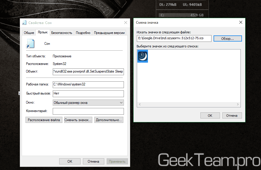 5. Создание ярлыка режим сна