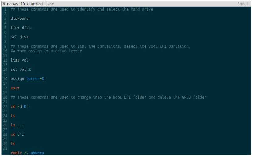Поэтому я подумал, что, если бы я мог просто удалить папку ubuntu из папки Boot EFI, то установка завершится успешно. В конечном счете, этого не произошло, но я выяснил, как удалять файлы GRUB из Windows 10 из командной строки.