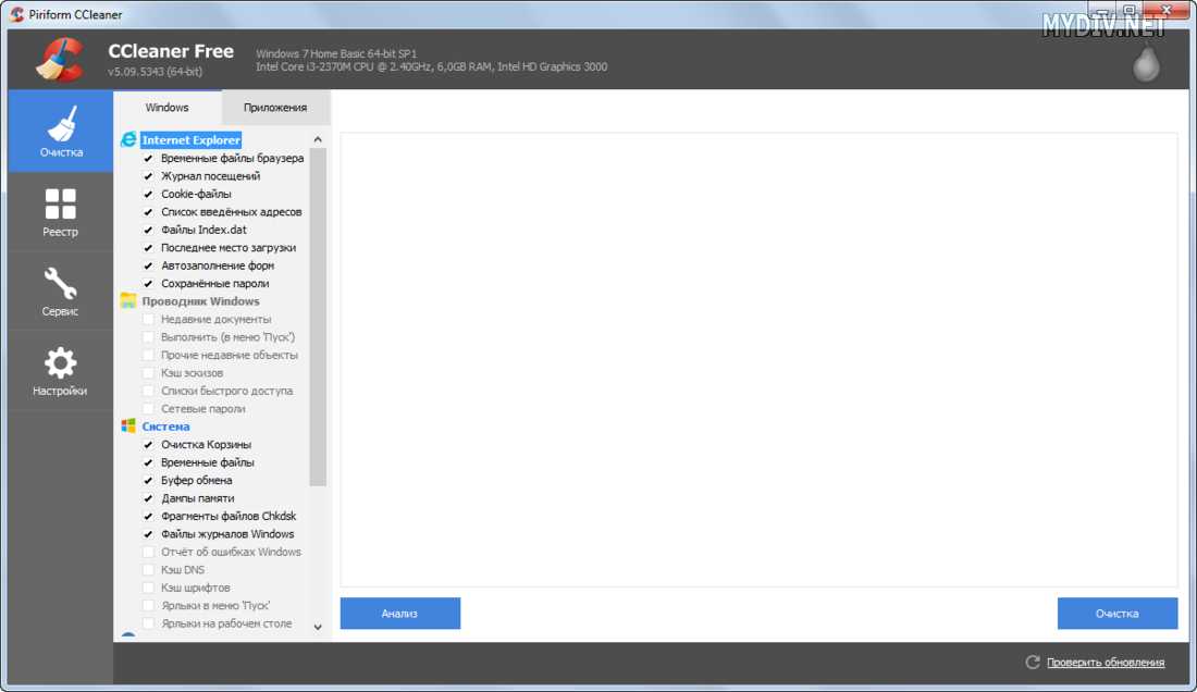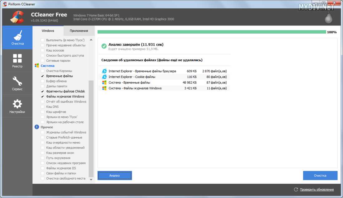 Чтобы начать простую очистку, нажимаем кнопку «Анализ».