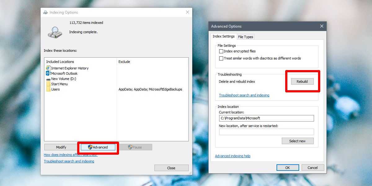 Проводник индексирует файлы по мере их добавления или создания. Это позволяет быстро находить файлы при использовании поиска Windows или панели поиска в проводнике. Его восстановление может ускорить работу приложения.