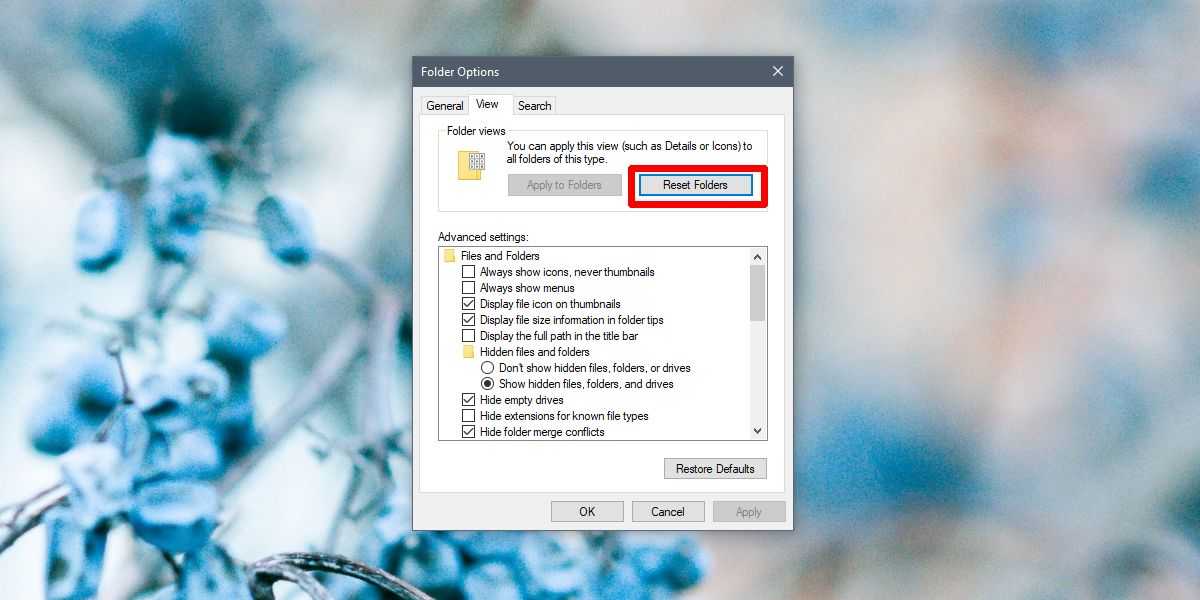 Сброс параметров папки может помочь ускорить работу проводника, но также сбросит настроенные вами макеты папок. Это того стоит, так как может ускорить работу проводника.