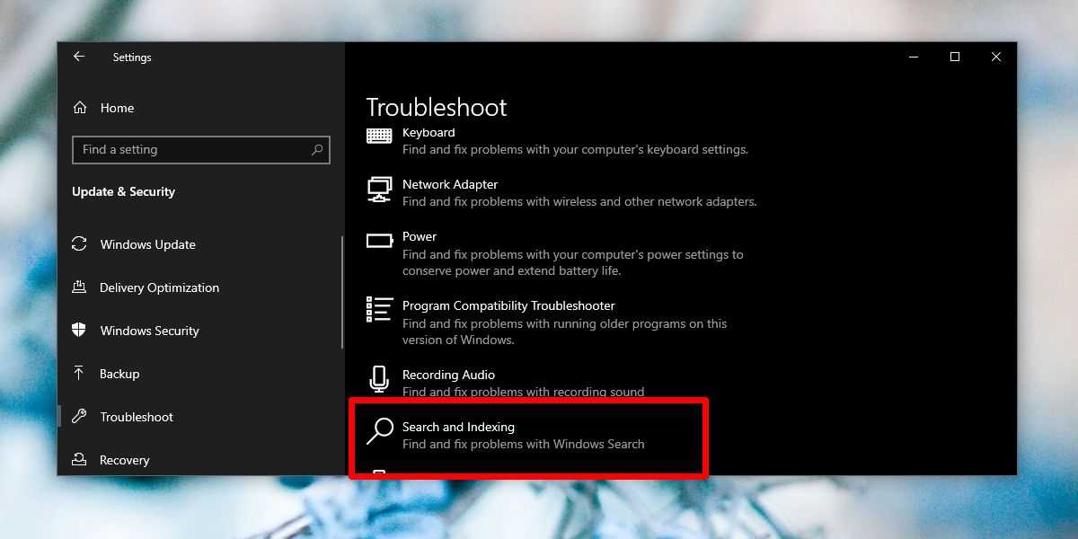 6. Запустите средство устранения неполадок поиска и индексирования.