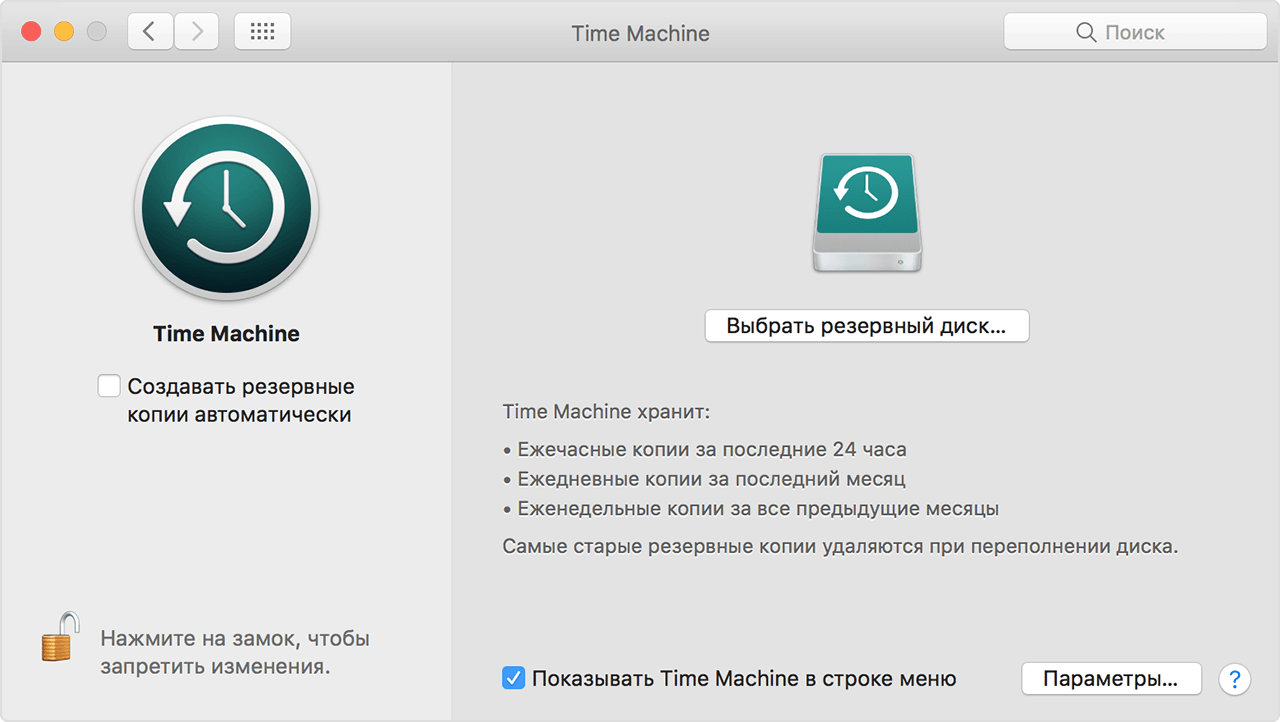 Если Time Machine не показывает выбор диска — сделайте следующее.