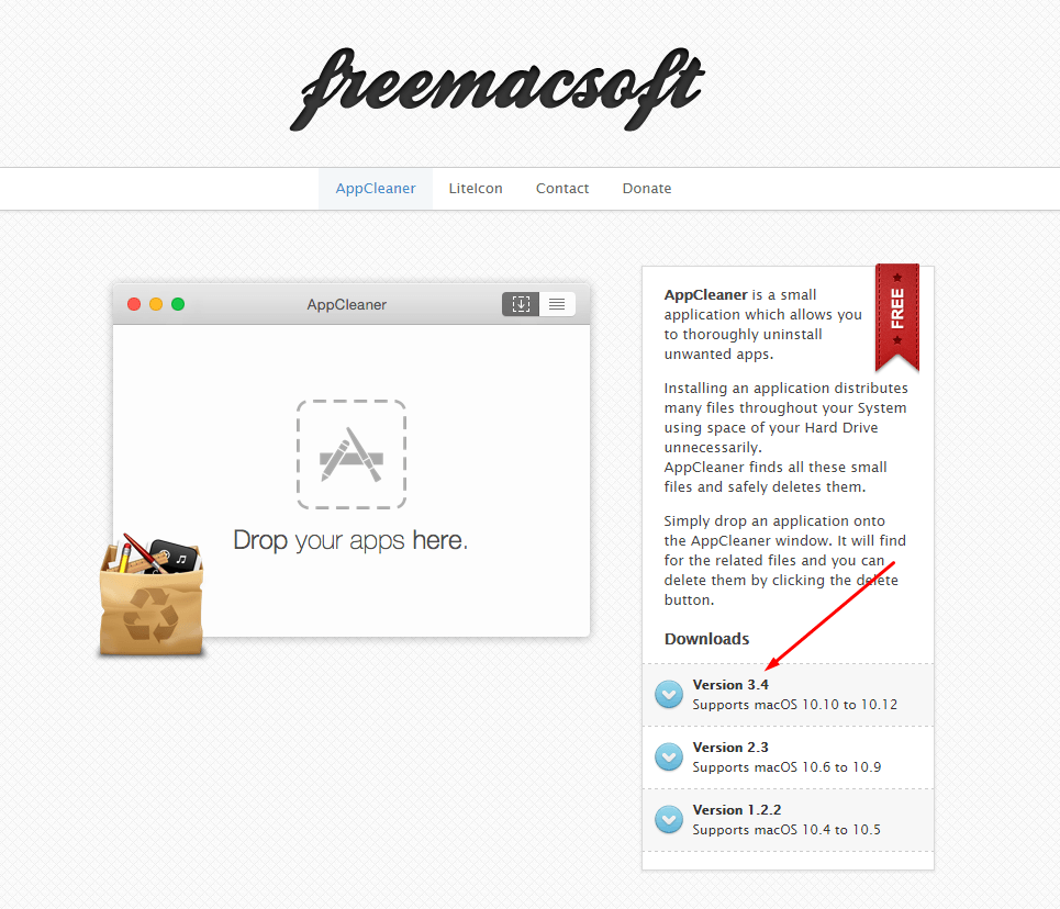 Одной из таких программ очистки является программа AppCleaner, которая находится в свободном доступе и оптимизирована для версий операционных систем Mac OS X 10.4+и Mac OS X 10.6+. Скачать программу можно с официального сайта разработчика, выбрав необходимую версию с правой стороны на главной странице.