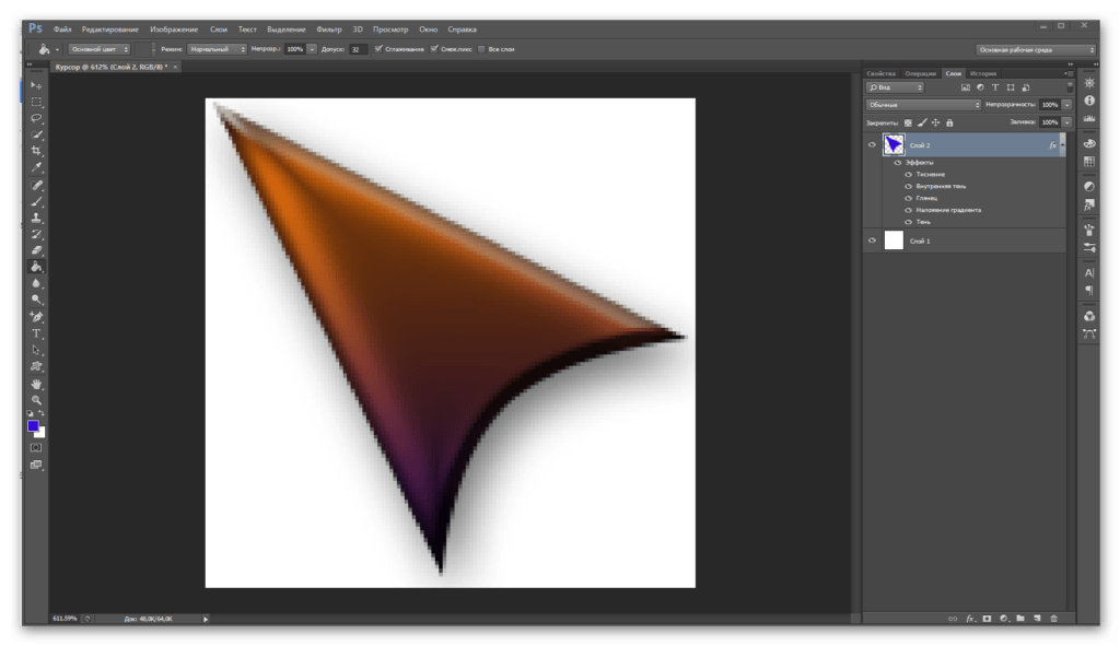 Вот такой курсор получился у меня. Простой, но в то же время он уникальный, интересный, а благодаря визуальным эффектам он кажется еще и объёмным.