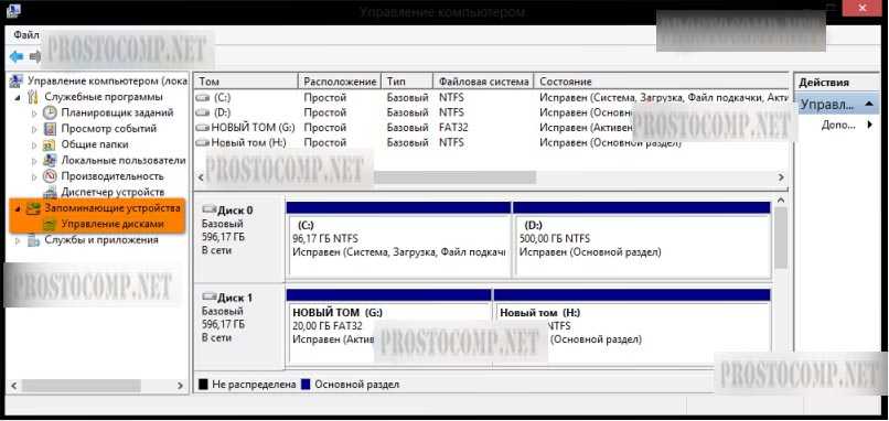 На более старых версиях Windows нужно попасть в «Управление компьютером». Для этого откройте «Панель управления», через меню «Пуск». Дальше откройте раздел «Администрирования» и раскройте «Управление компьютером». После этого нужно будет развернуть вкладку «Запоминающих устройств». На ней открываем «Управление дисками».