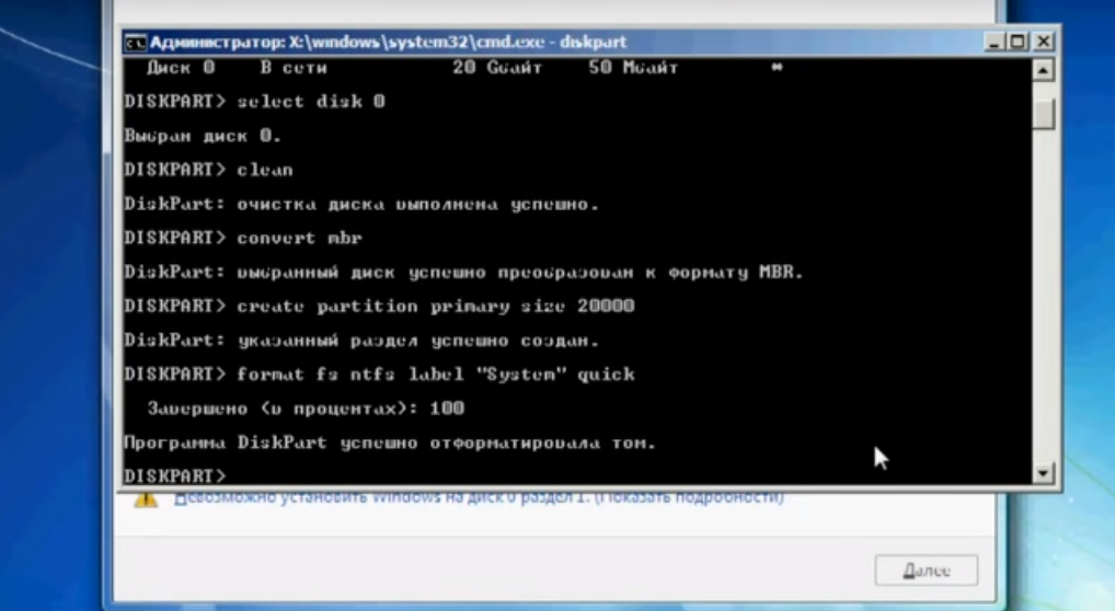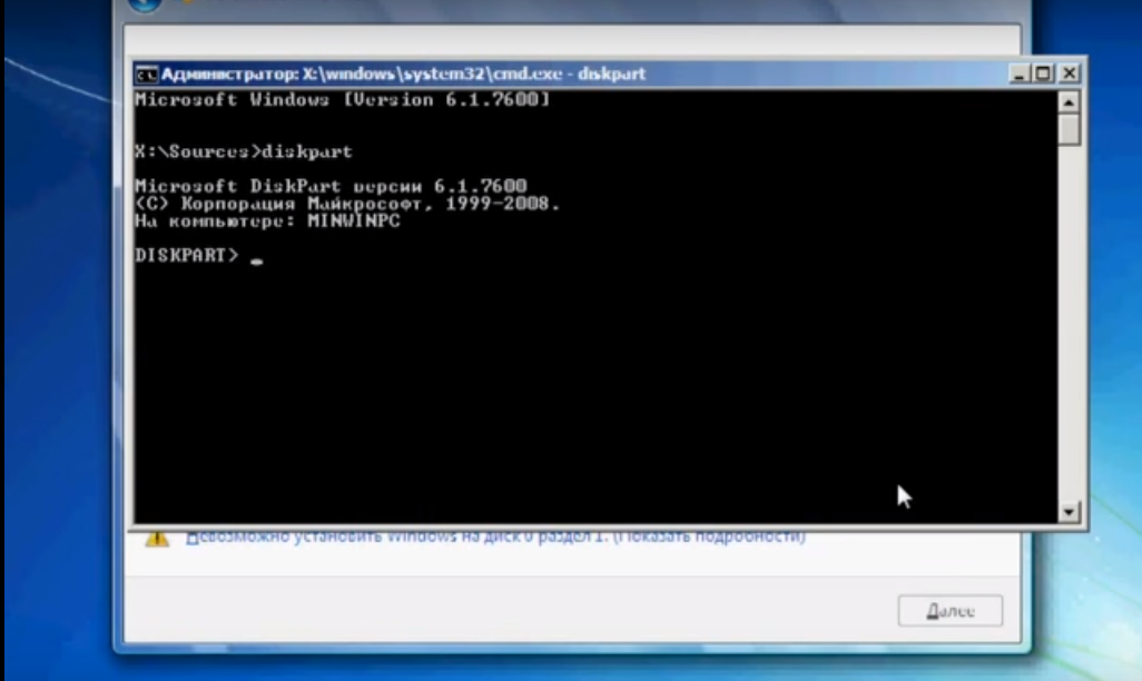 Конвертация GPT в MBR прямо во время установки – Способ с командной строкой