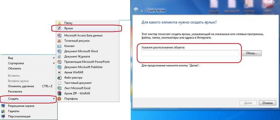 Наконец – самый простой способ. Просто нажмите правую кнопку мыши на нужном файле и, не отпуская, перетащите на рабочий стол. Там отпустите кнопку и появится меню – выберите в нём «Создать ярлыки».