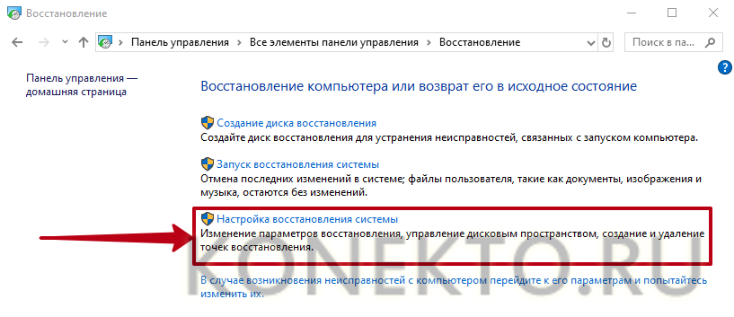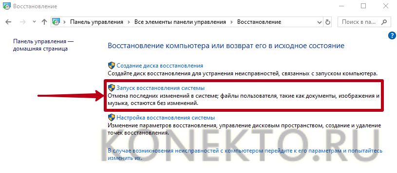 Теперь в случае появления проблем вы сможете вернуться на точку отката. Сделать это возможно одним из двух способов:
