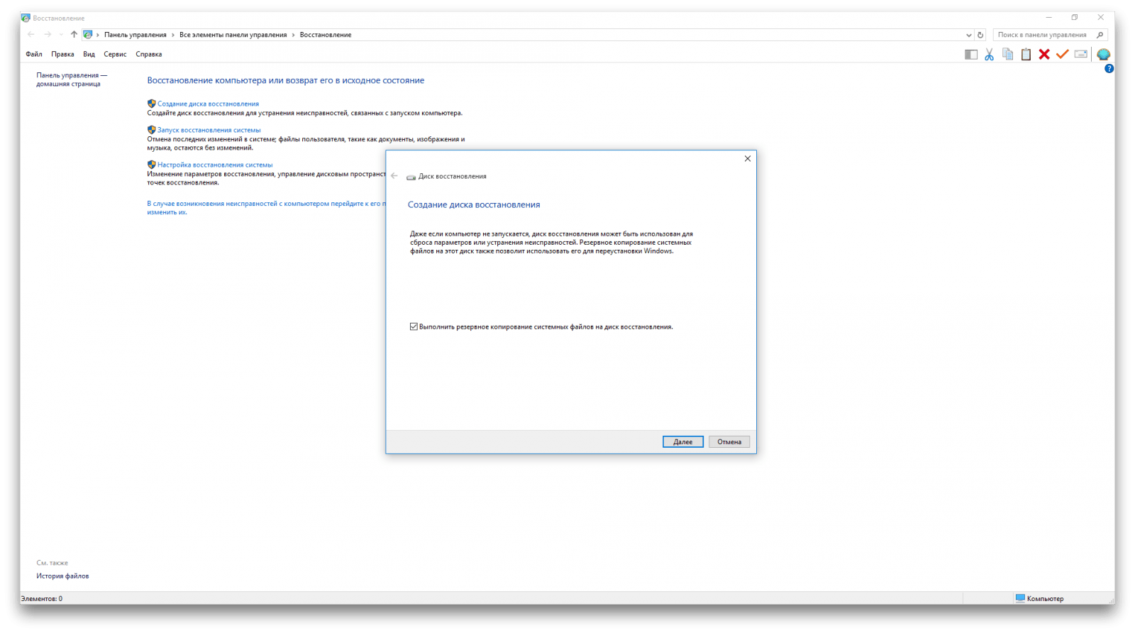 Диск восстановления пригодится, например, для отката к сохранённой точке или возврату в исходное состояние, если Windows отказывается . На роль такого диска подойдёт обычная флешка, внешний жёсткий диск или DVD.