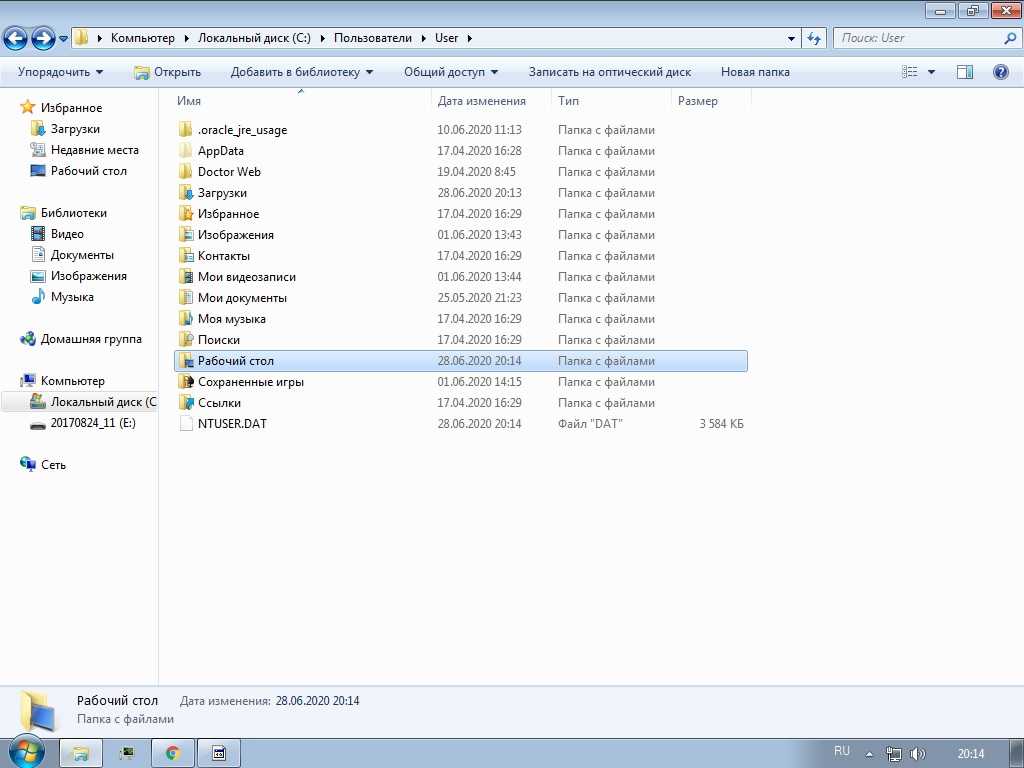 Перед каким-либо действием необходимо проверить состояние папок «Избранное» и «Рабочий стол»