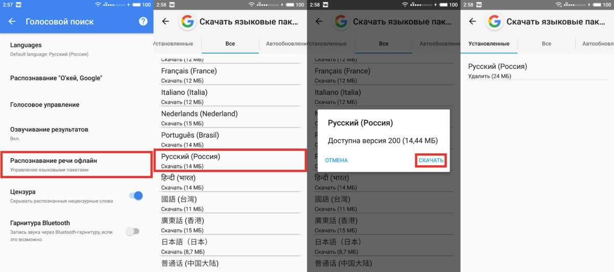 Обновление вашего языкового пакета также может решить вашу проблему. Из того же меню «Голосовой поиск» перейдите в «Распознавание речи офлайн» и загрузите или обновите свой языковой пакет на русском языке (Россия).
