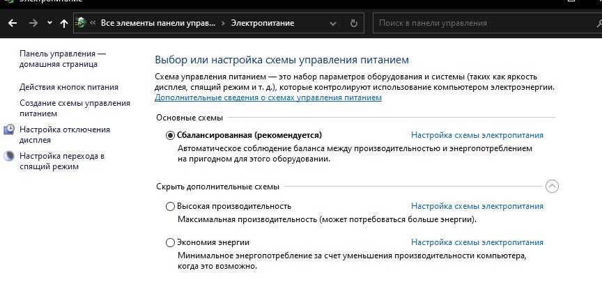 Настройки электропитания