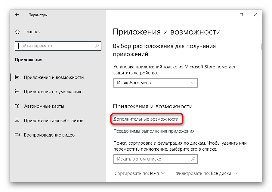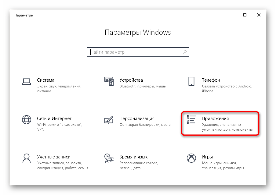 найдите: «Приложения» («Приложения и возможности»);