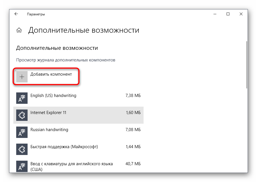 Включение компонента Windows