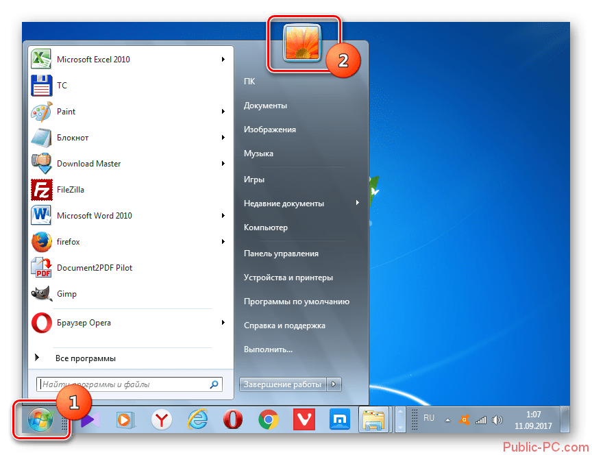 - Зайдите в «Пуск» и нажмите на фото аккаунта в правом верхнем углу меню.