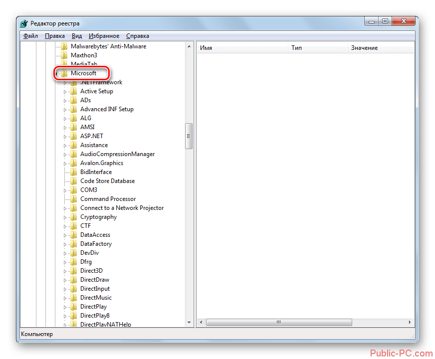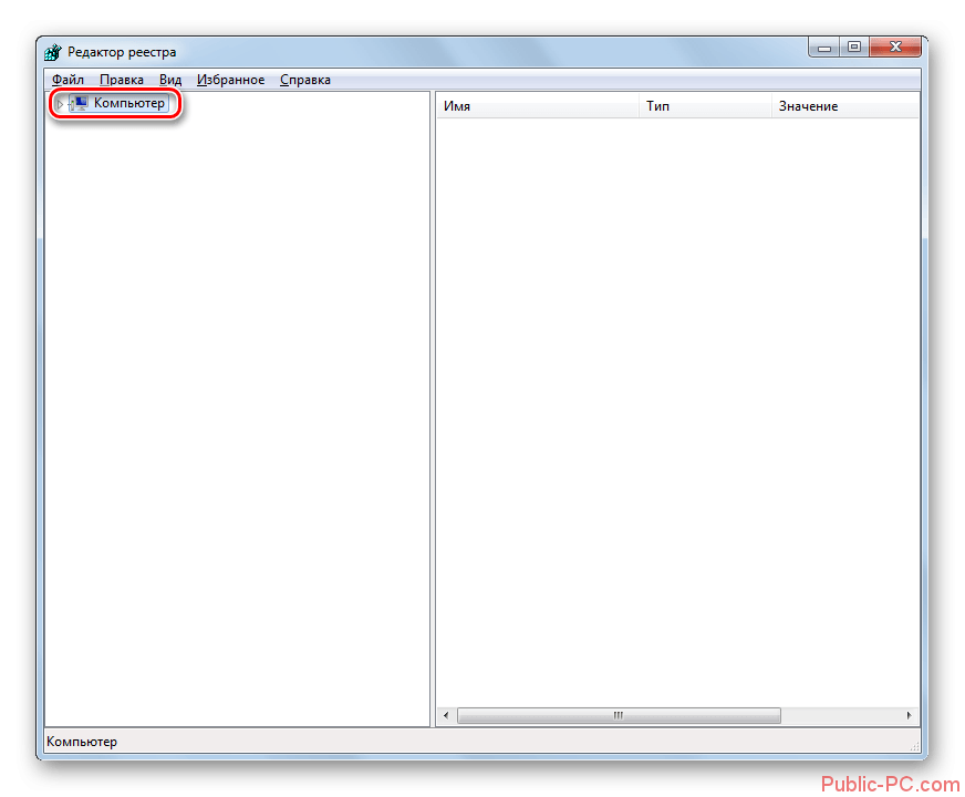 «Редактор реестра» открыт. В его левой области расположены инструменты навигации по разделам реестра, представленные виде каталогов. Если данные каталоги скрыты, щелкните по надписи «Компьютер».