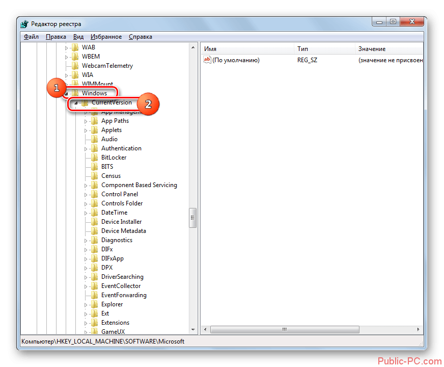 Теперь кликните «Windows», и далее «CurrentVersion».