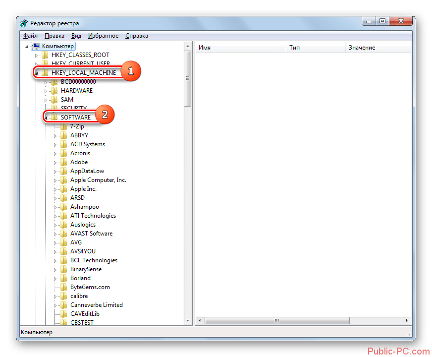 После того, как разделы отобразятся, кликайте по папкам «HKEY_LOCAL_MACHINE» и «SOFTWARE».