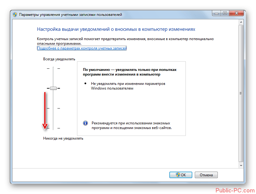 Уменьшите значение на шкале до «Никогда не уведомлять» и нажмите «Ок».