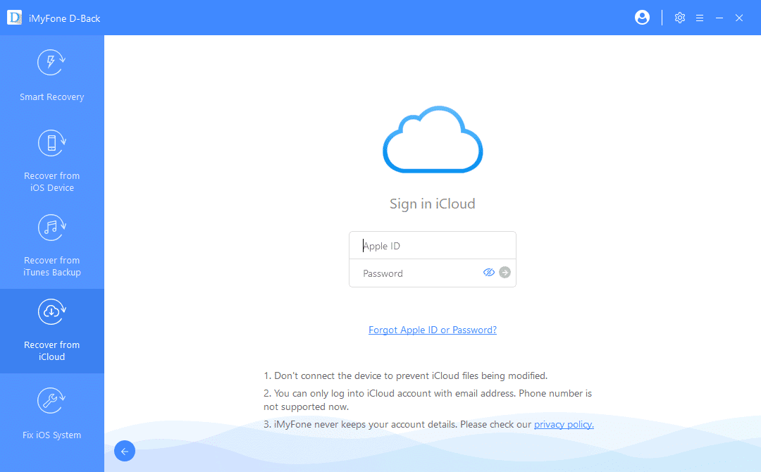Метод 01: восстановить удаленные видео из резервной копии iCloud с помощью iMyFone D-Back