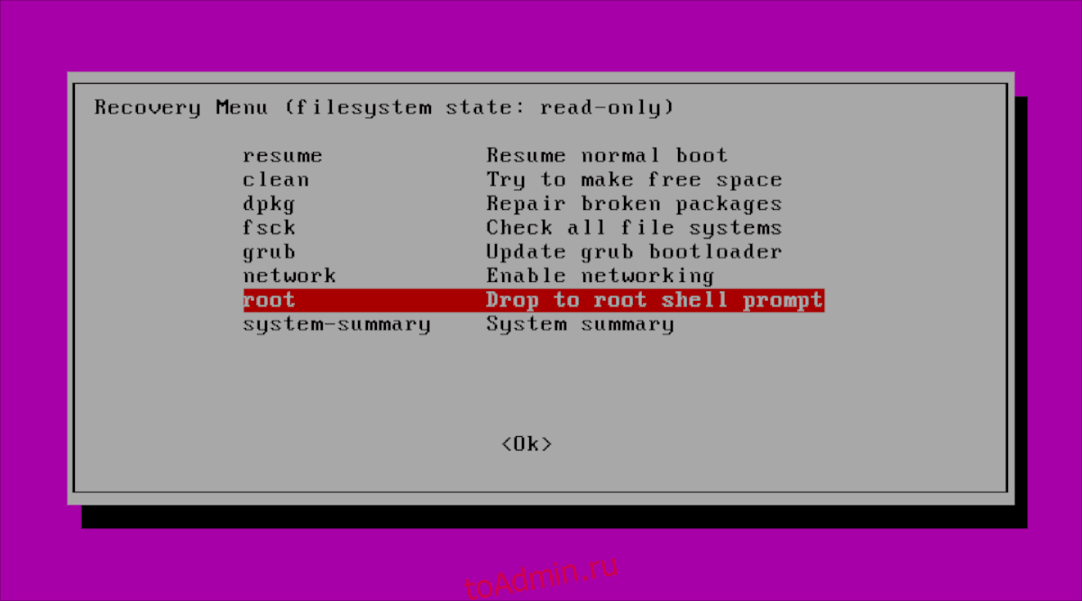 Иногда ваша система Ubuntu Linux может отказываться загружаться из-за неправильной конфигурации, системной ошибки и т. Д. Если другие варианты восстановления, о которых мы говорили, этого не делают, будет вариант «Корневой».