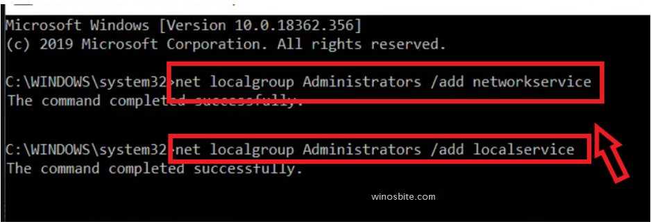 net localgroup Administrators /add networkservice net localgroup Administrators /add localservice