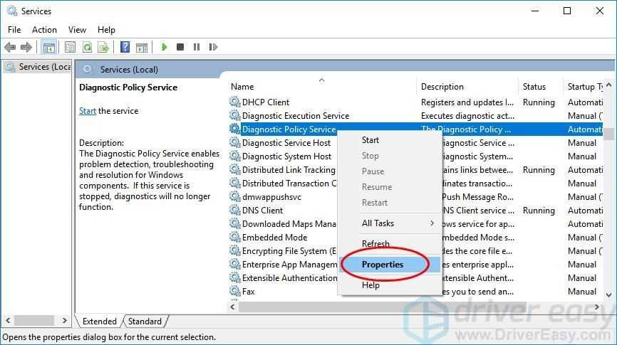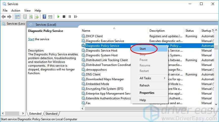 Способ . Проверьте статус службы «Служба политики диагностики»