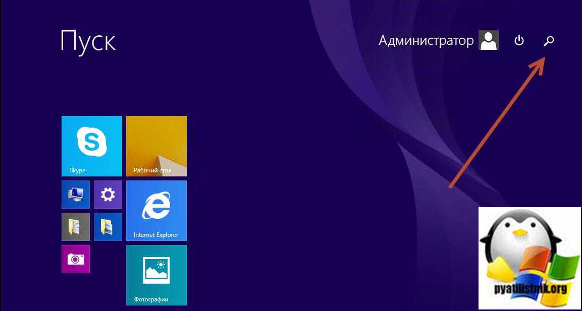 Откройте пуск, в правом верхнем углу нажмите значок с лупой.