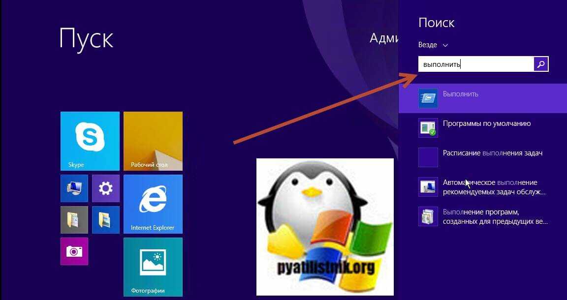 В окне поиска вводим слово «Выполнить», где получаем результат поиска.