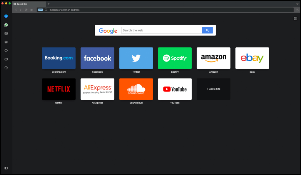 Меню в Opera упрощает доступ к Facebook Messenger, WhatsApp, Telegram, новостям, закладкам и классно Инструмент мгновенного поиска для доступа к веб-сайту или поиска через открытые вкладки в полностью отдельном всплывающем окне.
