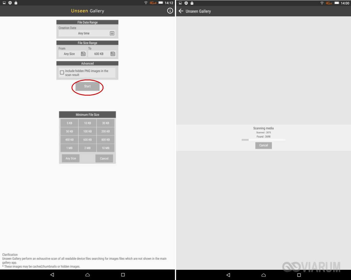 Теперь посмотрим, как удалить папку thumbnails на Андроид с помощью программы «Unseen Gallery – Cached images & thumbnails Manager». Установите приложение из Магазина, запустите и нажмите кнопку «Start». Приложение выполнит поиск всех JPEG-файлов на устройстве и рассортирует их по каталогам. Вам нужна папка thumbnails, в ней как раз и будут собраны миниатюры.