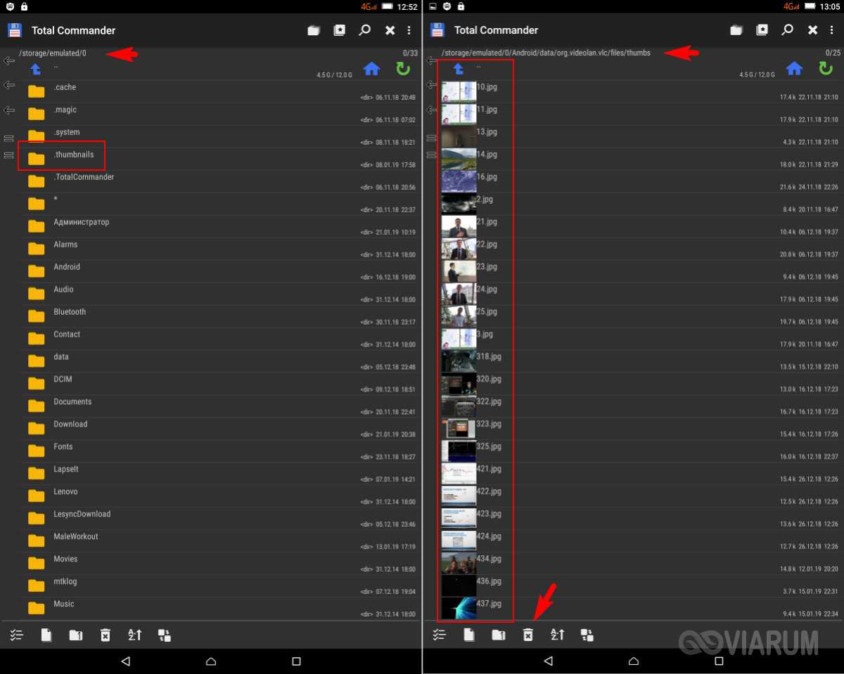 В данном примере для работы с файловой системой Android используется приложение Total Commander, но с таким же успехом вы можете воспользоваться любым другим файловым менеджером. Папка thumbnails чаще всего находится в следующих расположениях: