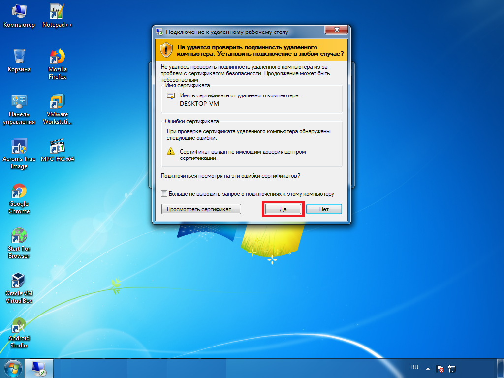 4. В появившемся окне нажмите Да, после чего начнётся сеанс удаленного подключения (Рис.24).