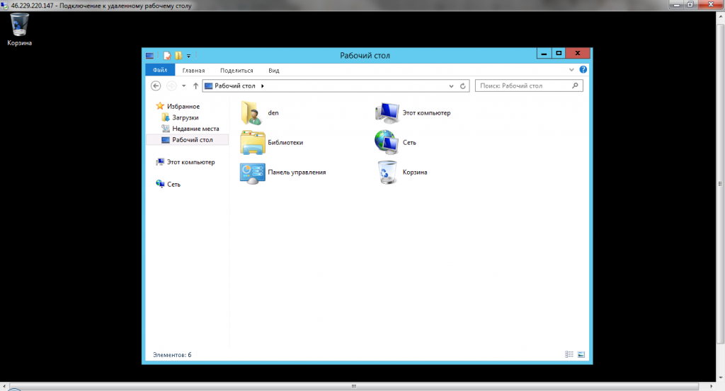 Подключение к удаленному рабочему столу (обратите внимание на имя пользователя — den, а не CloudAdmin). Собственно, на этом все