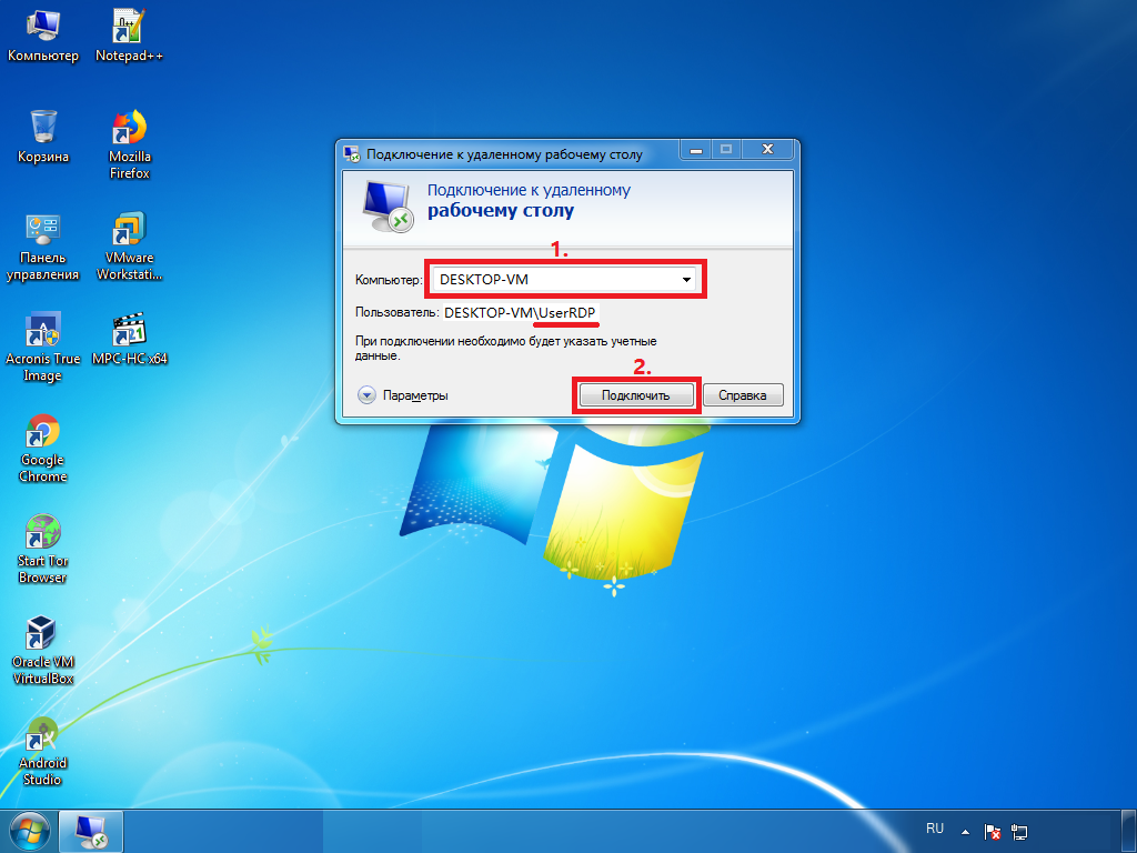 2. В открывшемся окне ведите имя компьютера к которому следует подключиться (прим. Тот, на котором производились все настройки), затем нажмите Подключить (Рис.22).