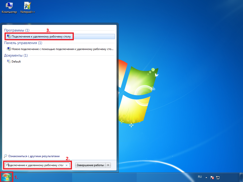 1. Используя второй компьютер, находящийся в той же локальной сети, нажмите Пуск, с помощью поисковой строки найдите, а затем выберите Подключение к удалённому рабочему столу (Рис.21).