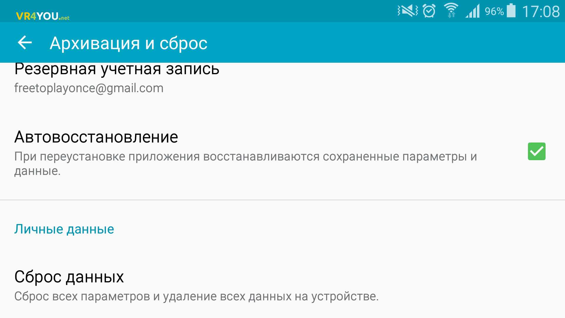 - В разделе «Личные данные» выбираем опцию «Восстановление и сброс».