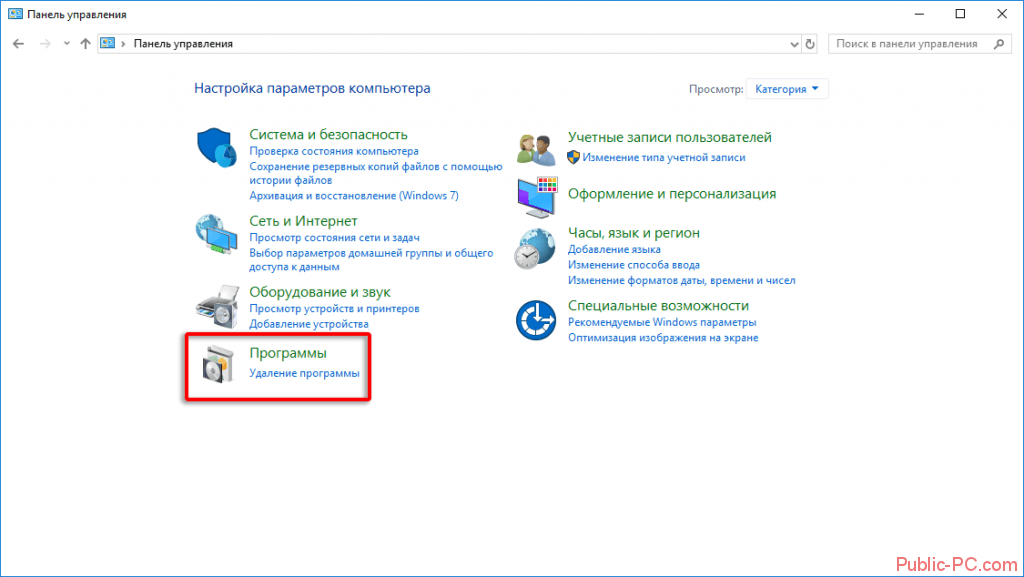 - Теперь выбрать плитку «Программы и компоненты».